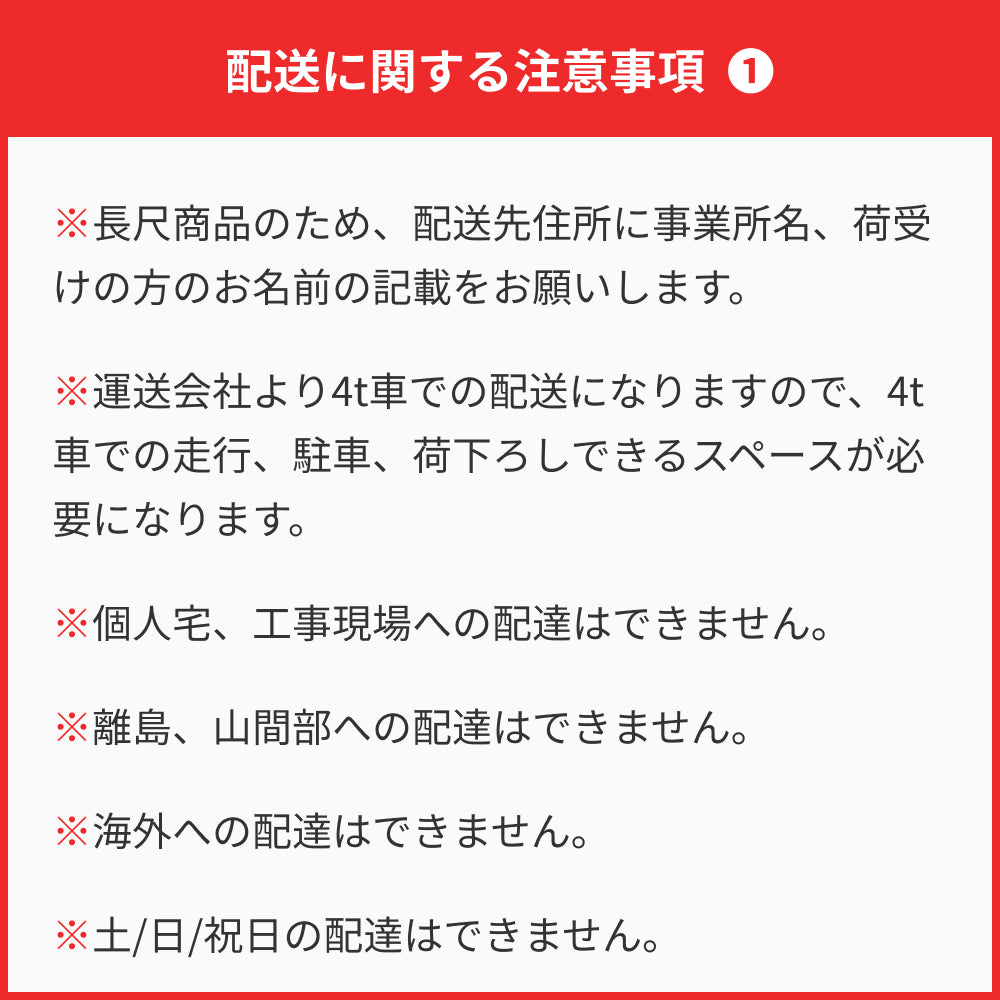 ※長尺商品のため、配送先住所に事業所名、荷受けの方のお名前の記載をお願いします。
